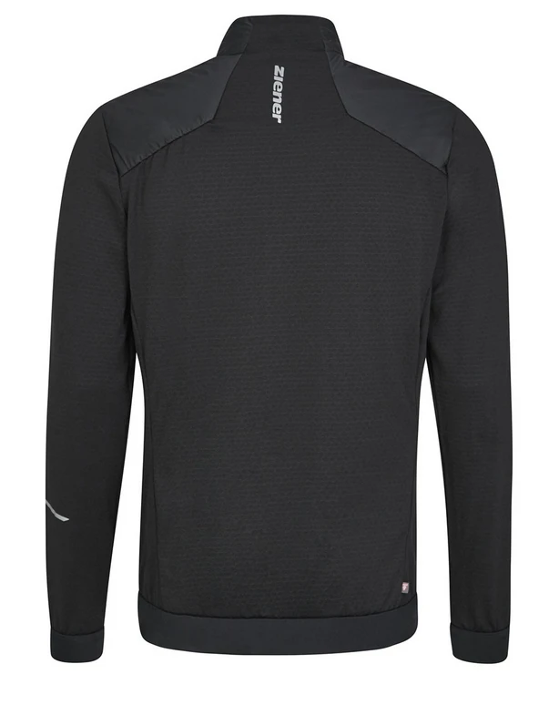 Die funktionelle, körpernah geschnittene ZIENER Herren Hybrid Jacke NESKO MAN ist mit einer wattierten Vorderseite aus PrimaLoft® Insulation (40g/m² Wattierung) versehen. Der Einsatz des atmungsaktiven und winddichten ZIENER WINDSHIELD® Materials an der Vorderseite verhindert das Auskühlen durch den Wind. Atmungsaktives Stretch-Material am Rücken sorgt für beste Beweglichkeit. Die Jacke ist PFC frei und besitzt stattdessen eine umweltfreundliche Imprägnierung. Weitere clevere Details machen die Jacke zu einem treuen Begleiter bei sportlichen Abenteuern: Der Stehkragen schirmt den Hals vor Wind und Wetter ab. Zwei seitliche Reißverschlusstaschen garantieren einen sicheren Stauraum für kleine Gegenstände. Ein elastischer Saumabschluss sorgt für den perfekten Sitz und reflektierende Elemente erhöhen die Sichtbarkeit.