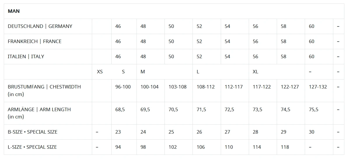 – atmungsaktives Stretchmaterial an Rücken und Ärmel